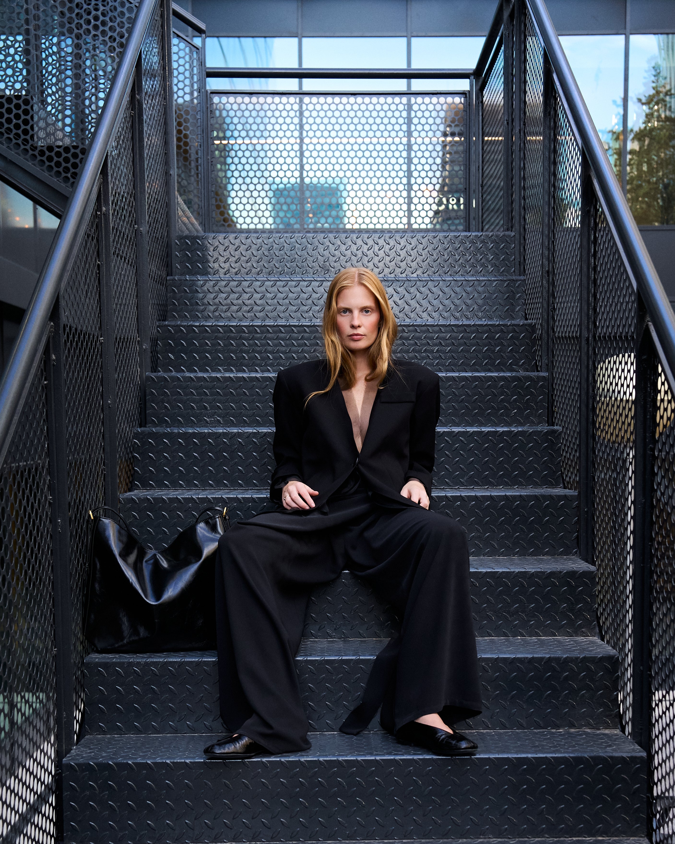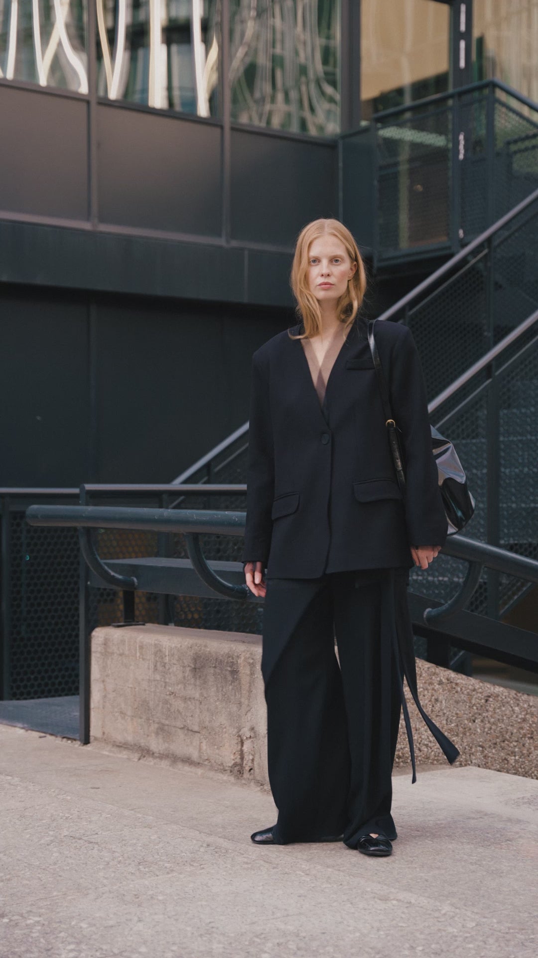 Blazer made with bi-stretch fabric. Oversize fit. Lapel collar. One-button fastening. Two flap pockets. Organza fabric detail underneath. Black color