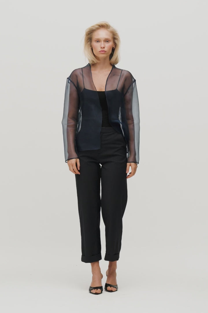 Trousers made in wool fabric. Straight fit. Cropped length.