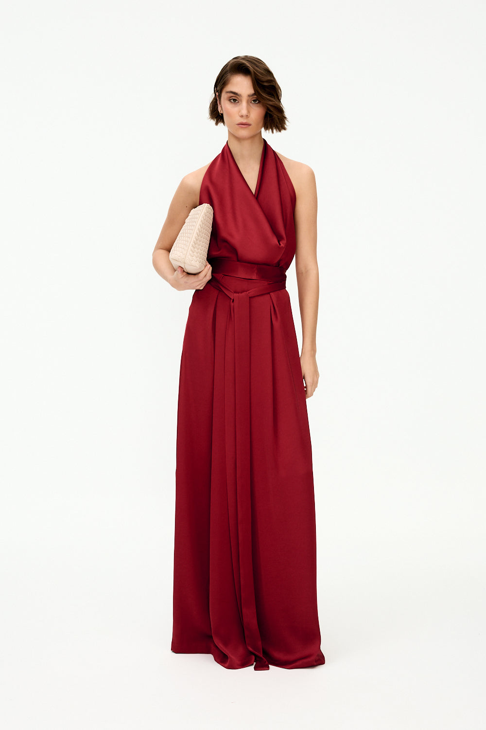 Estilo versátil: se puede dejar el cinturón caído o bien atarlo en lazada para lograr diferentes looks de noche.